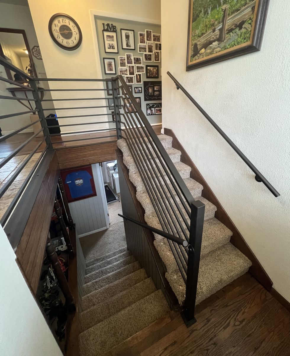 Before: stair railing was wobbly, dated and unsafe for the client to use while traversing the stairs